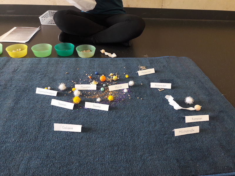 Zum Beispiel werden Himmelskörper im Zuge einer Erzählung nach dem Vorbild von Maria Montessori näher unter die Lupe genommen.
