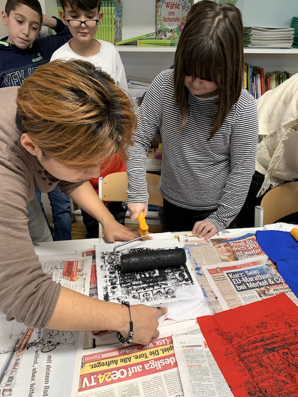 Als Dankeschön für die Spendenaktion für Save Tibet, besuchten uns 2 Tibeter. Sie erzählten von ihrem Land (Dach der Welt) und über ihre Kultur. Als Highlight durften die Kinder tibetische Gebetsfahnen drucken, die Glück bringen sollen.