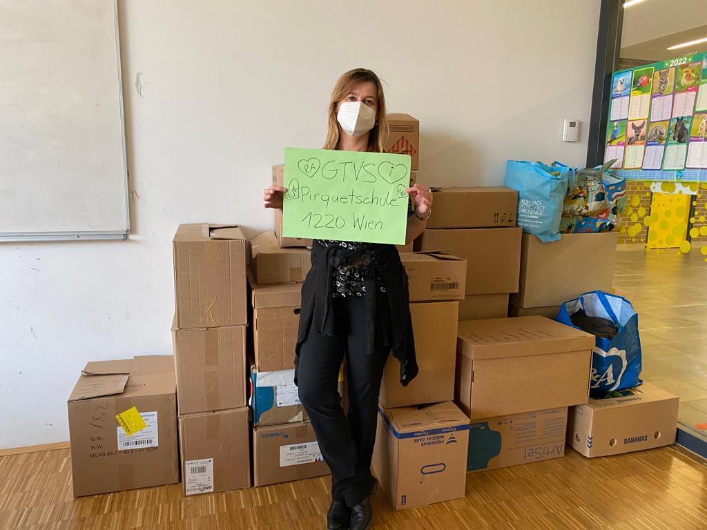 Mit ihrer Hilfe konnten wir 27 Kisten mit Lebensmitteln für ukrainische Flüchtlinge übergeben.
