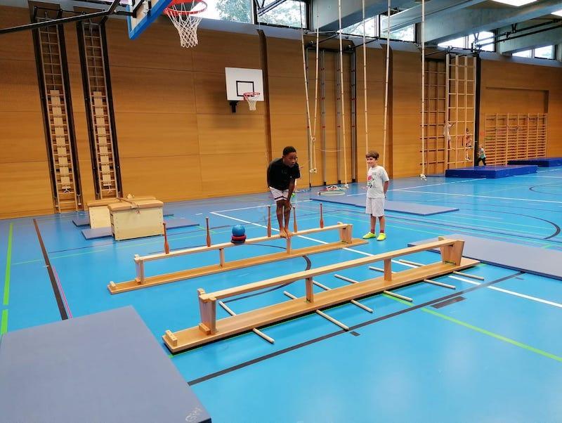 An unserer Schule wird jeden Donnerstag im Turnsaal ein Parcours aufgebaut. Durch regelmäßig wechselnde Gerätelandschaften werden bereits bekannte Übungen trainiert und neue Herausforderungen gestellt. So kommen alle Schülerinnen und Schüler in den Genuss, selbstständig abwechslungsreiche Bewegungserfahrungen erleben zu können.